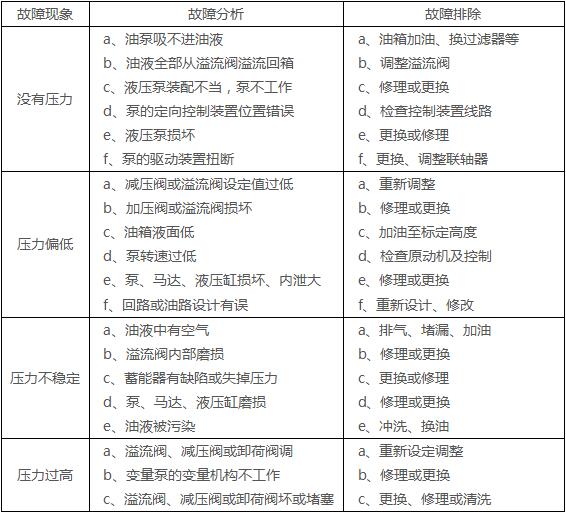 6、压力不正常故障分析和排除(表 1)